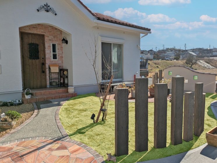 可児市/カントリー風のかわいい外構(A様邸) 工事場所 岐阜県 関連カテゴリー おしゃれ / 新築 / 植栽 / 階段&アプローチ / ガーデンルーム&デッキ / お庭 / ファサード / カテゴリから選ぶ 新築 かっこいい おしゃれ 照明 植栽 防草対策 階段&アプローチ ガーデンルーム&デッキ お庭 駐車場 ファサード リフォーム かっこいい おしゃれ 照明 植栽 防草対策 階段&アプローチ ガーデンルーム&デッキ お庭 駐車場 ファサード おすすめ施工例 キーワードから選ぶ フェンス セミクローズ外構 駐車場増設 立水栓 YKK 宅配ボックス 門周り 受賞作 クローズ Designer Yoshimura LIXIL 目隠しフェンス オープン外構 三協アルミ