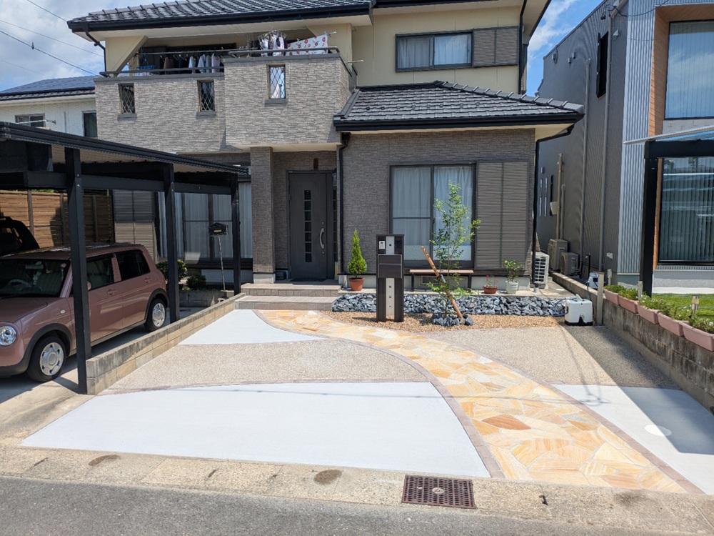 可児市/曲線アプローチが印象的なリフォーム外構 (Y様邸) 工事場所 岐阜県可児市 関連カテゴリー おしゃれ / リフォーム / 植栽 / 防草対策 / 階段&アプローチ / お庭 / 駐車場 / ファサード / カテゴリから選ぶ 新築 かっこいい おしゃれ 照明 植栽 防草対策 階段&アプローチ ガーデンルーム&デッキ お庭 駐車場 ファサード リフォーム かっこいい おしゃれ 照明 植栽 防草対策 階段&アプローチ ガーデンルーム&デッキ お庭 駐車場 ファサード おすすめ施工例 キーワードから選ぶ Designer Yoshimura LIXIL 目隠しフェンス オープン外構 三協アルミ フェンス セミクローズ外構 駐車場増設 立水栓 YKK 宅配ボックス 門周り 受賞作 クローズ