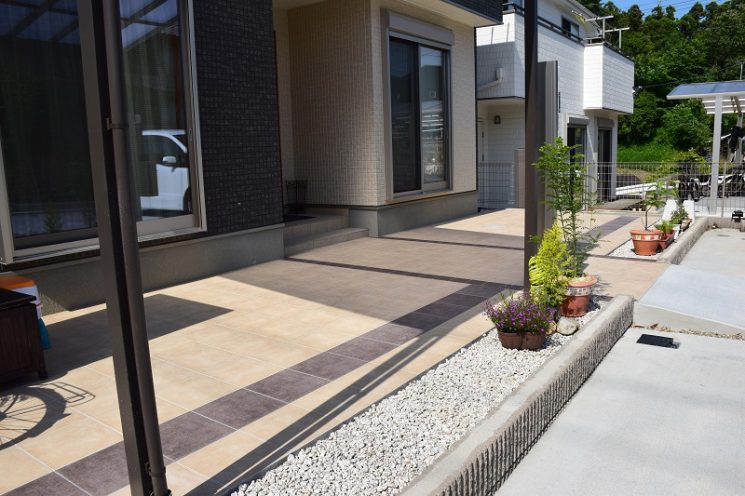 建物前をタイルデッキに。メンテナンスのいらない楽ちんお庭 工事場所 愛知県 関連カテゴリー 新築 / 駐車場 / お庭 / ガーデンルーム&デッキ / 階段&アプローチ / 防草対策 / カテゴリから選ぶ 新築 ファサード 駐車場 お庭 ガーデンルーム&デッキ 階段&アプローチ 防草対策 植栽 照明 リフォーム ファサード 駐車場 お庭 ガーデンルーム&デッキ 階段&アプローチ 防草対策 植栽 照明 おすすめ施工例 キーワードから選ぶ 受賞作 クローズ外構 LIXIL YKK フェンス 門まわり セミクローズ外構 三協アルミ 新築 植栽 ウッドデッキ 駐車場まわり アプローチ