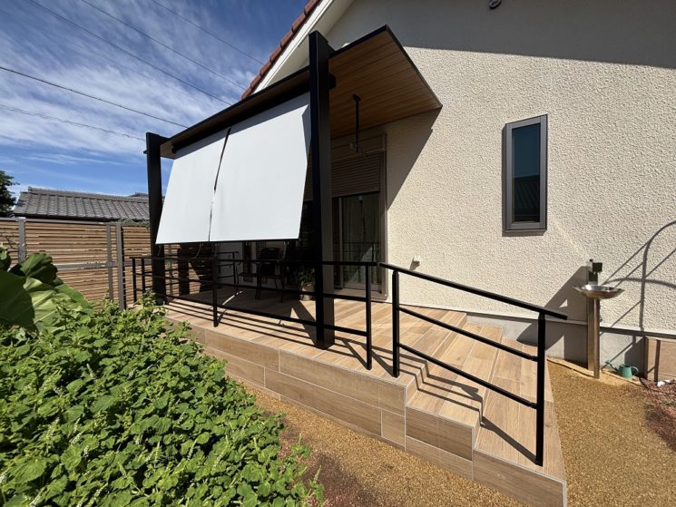 ナチュラルでかわいいタイルテラスとテラス屋根の設置工事 工事場所 愛知県 関連カテゴリー リフォーム / お庭 / ガーデンルーム&デッキ / カテゴリから選ぶ 新築 ファサード 駐車場 お庭 ガーデンルーム&デッキ 階段&アプローチ 防草対策 植栽 照明 リフォーム ファサード 駐車場 お庭 ガーデンルーム&デッキ 階段&アプローチ 防草対策 植栽 照明 おすすめ施工例 キーワードから選ぶ 受賞作 クローズ外構 LIXIL YKK フェンス 門まわり セミクローズ外構 三協アルミ 新築 植栽 ウッドデッキ 駐車場まわり アプローチ