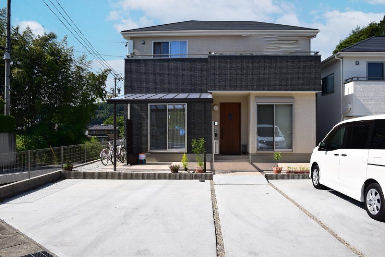 黒が外構を引き締める。人気のブラックポリカ屋根カーポート